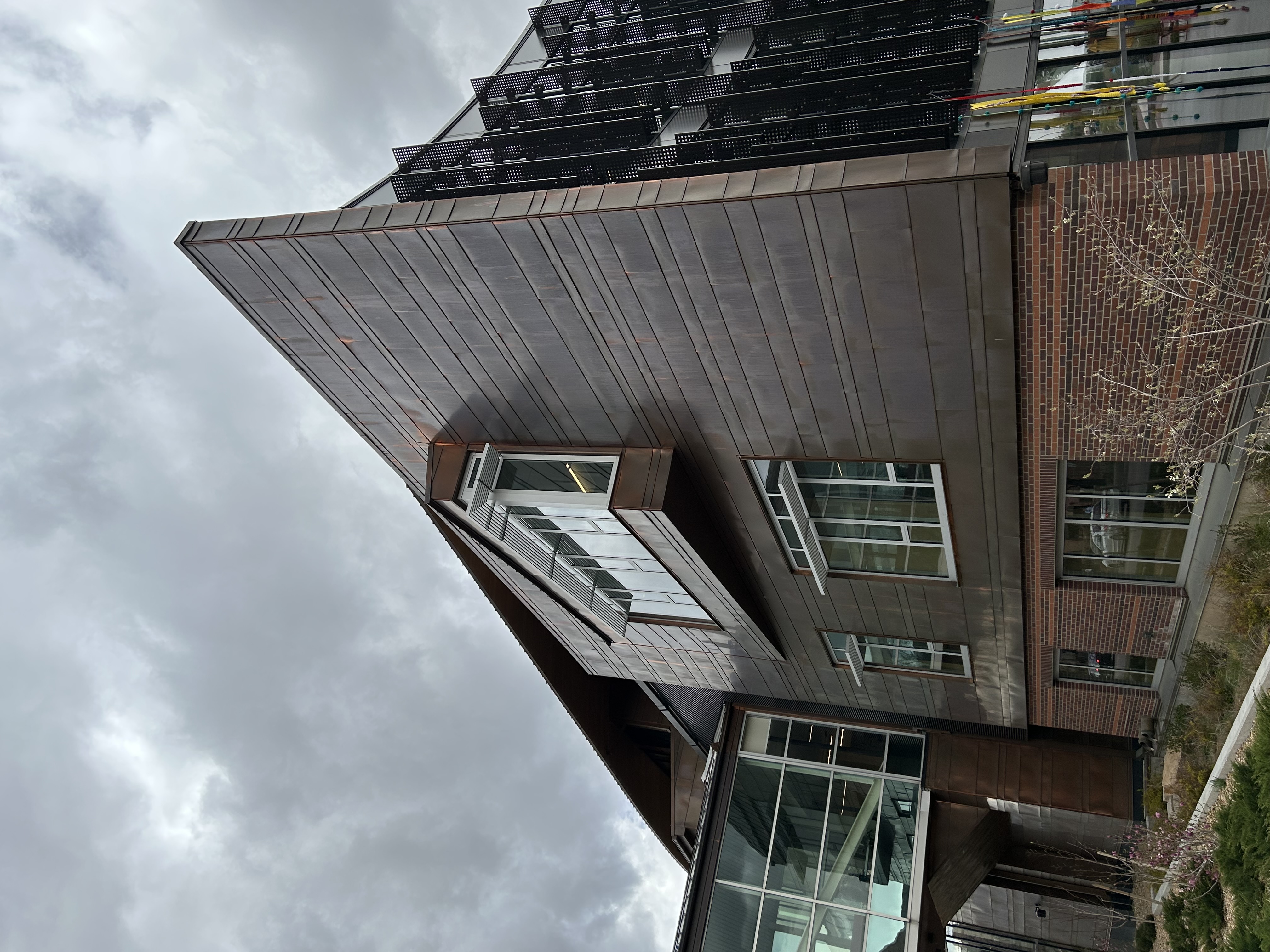 The existing University of Denver campus features copper prominently across the campus. Copper is a regionally sourced and produced material, reducing embodied energy in the extraction, manufacturing, and delivery process. Copper’s longevity in architectural applications is anticipated to perform for the life of the building, minimizing maintenance and avoiding replacement of cladding materials in the future.